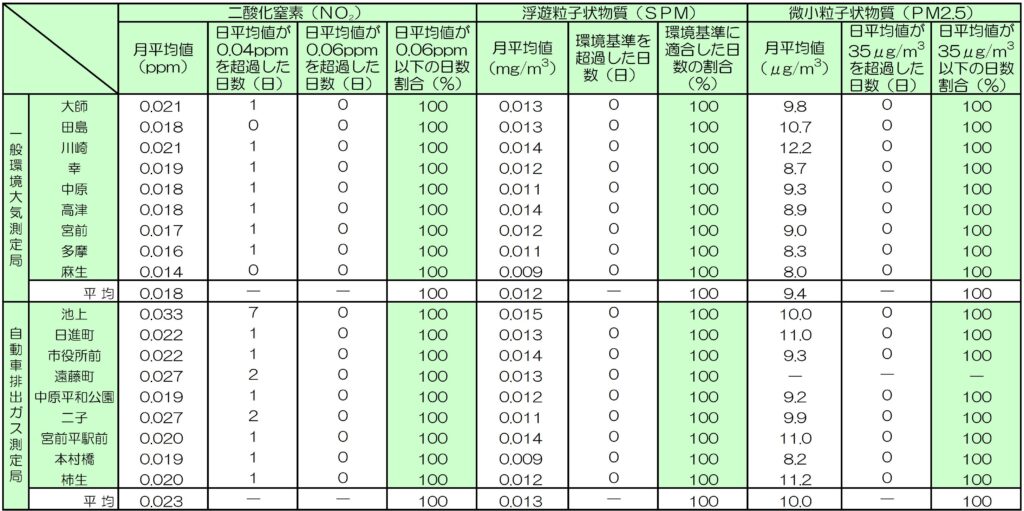 2 浮遊粒子状物質:1時間値の1日平均値が0.10mg/m3以下であり、かつ、1時間値が0.20mg/m3以下