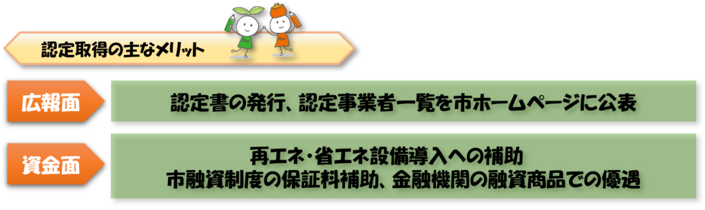 認定取得には「中小規模事業者用脱炭素化取組計画書」の提出が必要となりますが、担当職員による事前相談から計画書作成までの伴走支援を行うとともに、認定取得後は市によるPRや融資制度等での優遇など、取組を応援する体制も充実しています。
