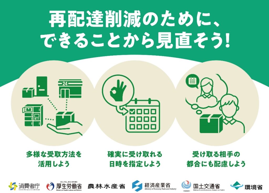川崎市は、国が取り組んでいる『再配達削減PR月間』に協力・賛同し、再配達削減に向けた取組を進めています。