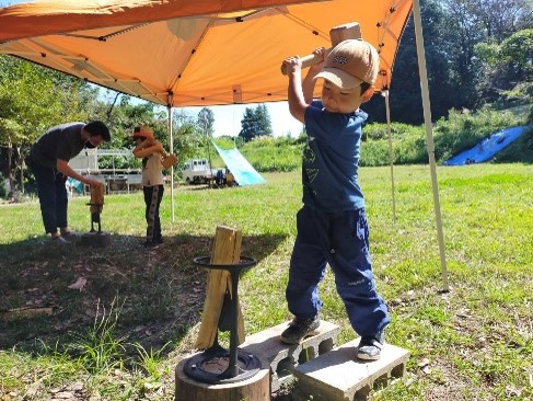 まき割り体験の様子